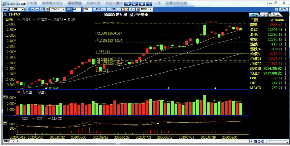 台股今(11)日台積電(2330)、鴻海(2317)、聯發科(2454)、大立光(3008)遭遇調節賣壓,整體電子股除PCB相關類股表現較為強勢,其餘皆有賣壓,終場下跌113.81點,收在 12,780.19點,成交值為 2,054.2億元。下檔支撐設定11,800點,大盤隨時會再創高,嚴控持股比重不追高慎選個股。