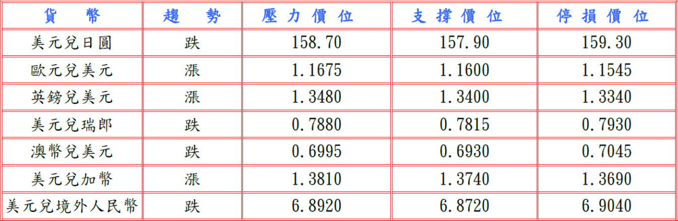 隨後美國勞工統計局公布第四季單位勞工成本大幅向上修正為成長4.4%,但非農業生產率增速下修至1.8%,並據S&P全球調查美國3月追蹤製造業與服務業的綜合PMI降至十一個月最低51.4,而且伊朗衝突導致油價飆升及民眾普遍反對美國對伊朗發動戰爭,民意調查顯示美國總統川普的支持率跌至其重返白宮以來新低36%,打壓美元兌日圓至158.25低點。預估今日美元兌日圓阻力於158.70-90,支撐於157.70-90。