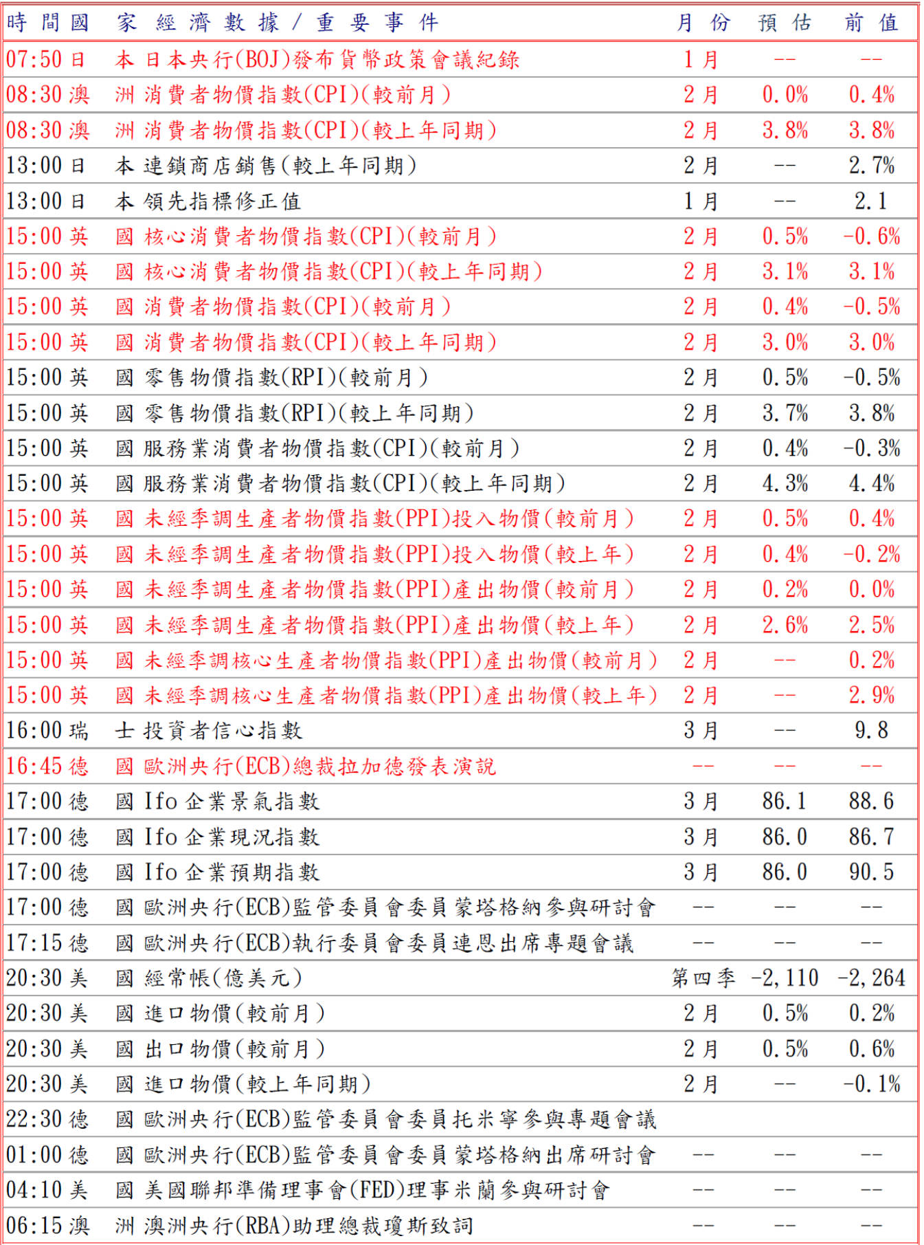 昨日紐西蘭央行(RBNZ)總裁布雷曼警告若通貨膨脹有固化之勢,可能需要加息,但據澳盛銀行(ANZ)-Roy Morgan每周消費者調查,澳洲主要信心指數上周跌至1973年調查以來最低63.1,而且美國總統川普延後對伊朗的襲擊,伊朗外交部則否認曾進行談判,投資人亦質疑全球股市反彈能否持續,壓抑澳幣和紐元等風險貨幣。
