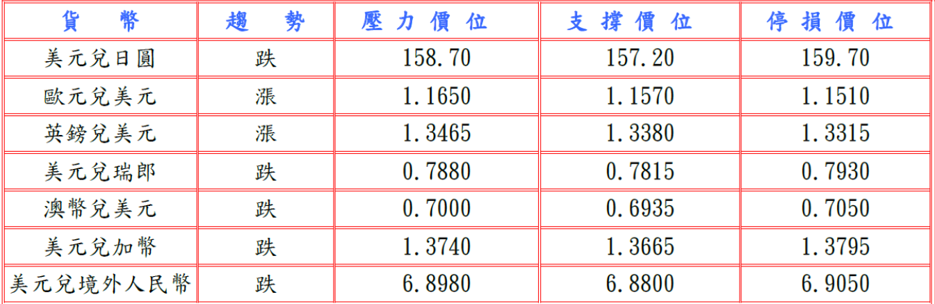 隨著路透/益普索最新調查顯示,美國與伊朗衝突抑制全球石油供應,汽油價格上漲已開始對美國家庭財務造成衝擊,絕大多數美國人預計燃料成本將繼續攀升,並據美國數據顯示2月全國活動指數降至負0.11及1月建築支出較前月下滑0.3%遜於預期,而且美國總統川普表示與伊朗進行良好且富有成效的對話,將下令任何針對伊朗發電廠和能源基礎設施的軍事打擊行動推遲五天,緩和緊張情緒,打擊美元兌日圓跌至158.02低點。預估今日美元兌日圓阻力於158.70-90,支撐於157.00-20。