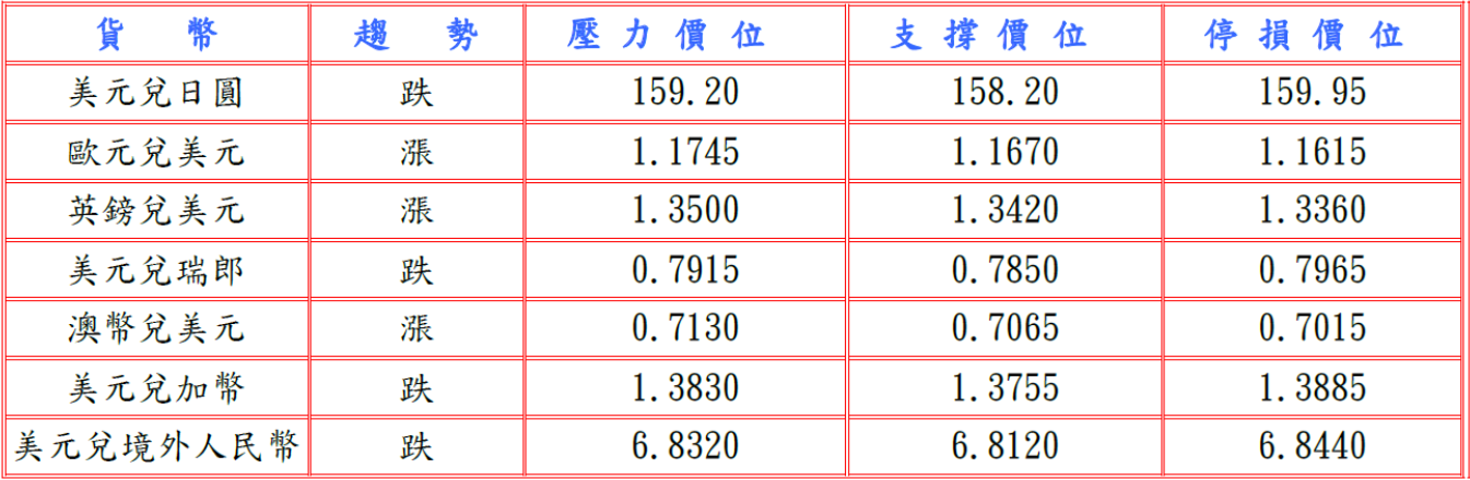 據美國政府第三次估值顯示,第四季國內生產總值(GDP)環比年率終值下修至0.5%,但美國2月個人消費支出(PCE)物價指數分別較前月與上年同期漲0.4%及2.8%符合預期,並據美國勞工部公布截至4月4日當周,經季節調整初請失業金人數略增至21.9萬人,但表明勞動力市場未惡化,而且受專業和電氣設備庫存大幅增加推動,美國2月躉售銷售較前月增2.7%遠超過預估值及躉售庫存較前月反彈0.8%為十三個月來最大增幅,提振美元兌日圓至159.29高點。預估今日美元兌日圓阻力於159.20-40,支撐於158.00-20。
