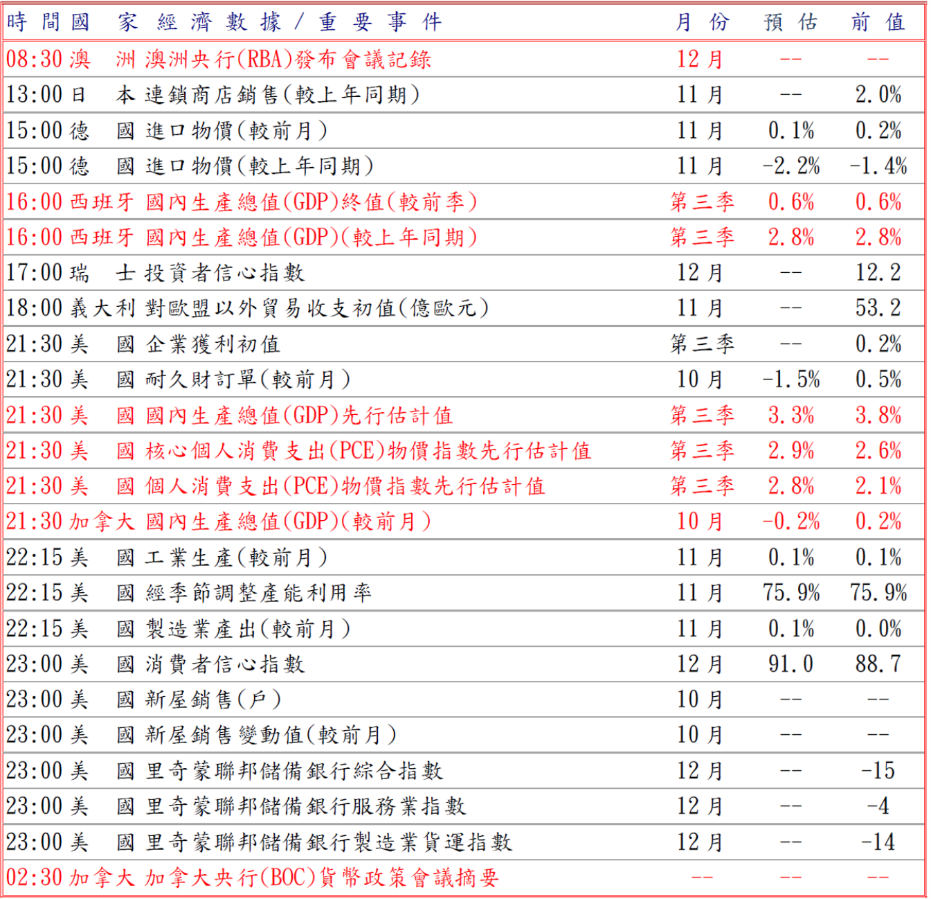週一招聘網站Adzuna稱,截至11月的十二個月,英國在線招聘廣告創今年迄今最大降幅達15.2%,而且11月招聘廣告較前月降6.4%,為連續五個月下滑,打擊英鎊兌美元至1.3365低點。隨後英國國家統計局(ONS)公布第三季國內生產總值(GDP)增長0.1%符合初值,其中家庭消費較前季增加0.3%為一年來最快環比增長,同時企業投資分別較前季與上年同期增幅擴大至1.5%及2.7%,經常帳赤字則大幅縮減至120.67億英鎊,推升英鎊兌美元至1.3477高點。預估今日英鎊兌美元支撐於1.3430-50,阻力於1.3530-50。