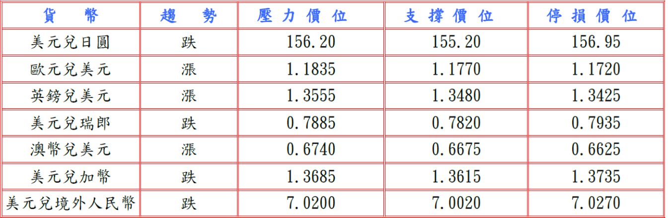 隨後美國第三季初值數據顯示,受強勁消費支出推動,國內生產總值(GDP)環比增長年率遠高於預期達4.3%,個人消費支出(PCE)物價指數與核心PCE物價指數則分別漲2.8%及2.9%符合預期,而且美國11月工業生產較前月成長0.2%及產能利用率為76.0%優於預估值,但11月製造業產出較前月持平不及預期及10月耐久財訂單較前月降2.2%超過預估值,而且世界大型企業研究會公布美國12月消費者信心指惡化至89.1,打擊美元兌日圓至155.63低點,可是白宮經濟顧問哈西特稱,經濟數據顯示美國經濟增長強於預期,是總統川普的貿易政策和對人工智能(AI)投資結果,預示未來就業增長速度將更快,限制美元下跌。今日部分市場聖誕假期休市,預估美元兌日圓阻力於156.20-40,支撐於155.00-20。
