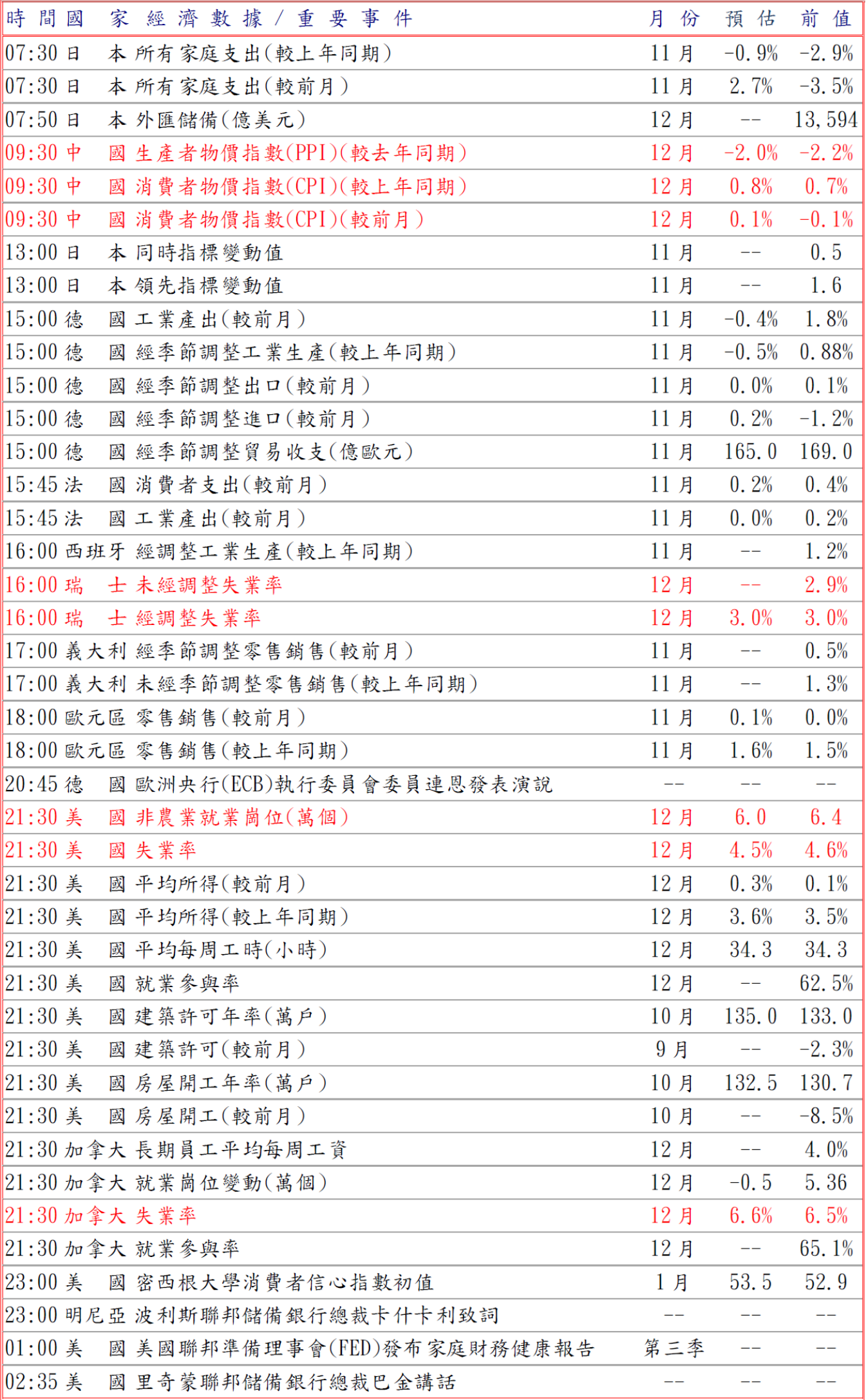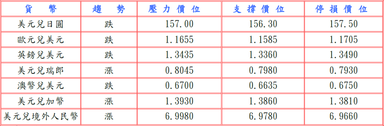 隨著日本與中國緊張關係升級可能為脆弱經濟帶來新風險,一些BOJ高管表示迄今這種影響有限,但恐開始蔓延,令日圓承壓;此外,美國聯邦準備理事會(FED)理事米蘭希望今年降息150個基點,以提振勞動力市場,但美國上周初請失業金人數為20.8萬人低於預期及10月躉售庫存較前月增加0.2%符合預估值,同時第三季非農業生產率按年率計算創兩年來最快增速達4.9%,並據紐約聯邦儲備銀行報告顯示美國人12月加劇擔憂就業市場,但對個人財務狀況焦慮緩解及短期通貨膨脹預期上升,而且美國10月進口下降,促使貿易逆差驟降至2009年6月以來最低294億美元,若趨勢持續,第四季貿易或再拉動經濟增長,美國財政部長貝森特則稱稅收減免今年助力經濟,推升美元兌日圓至157.07高點。今日市場聚焦美國就業報告,預估美元兌日圓阻力於156.90-157.10,支撐於156.00-20。